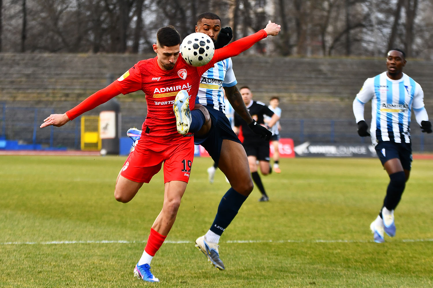 До краја првог полувремена играло се у високом ритму. У 38. минуту Балде је атрактивно прошао по десном боку и идеално центрирао, али Евандро није успео да главом захвати лопту како је желео. Казна је стигла у 45. минуту – после полуконтре домаћих, Крсмановић је центрирао са леве стране, а Холендер на другој стативи погодио за 2:1.