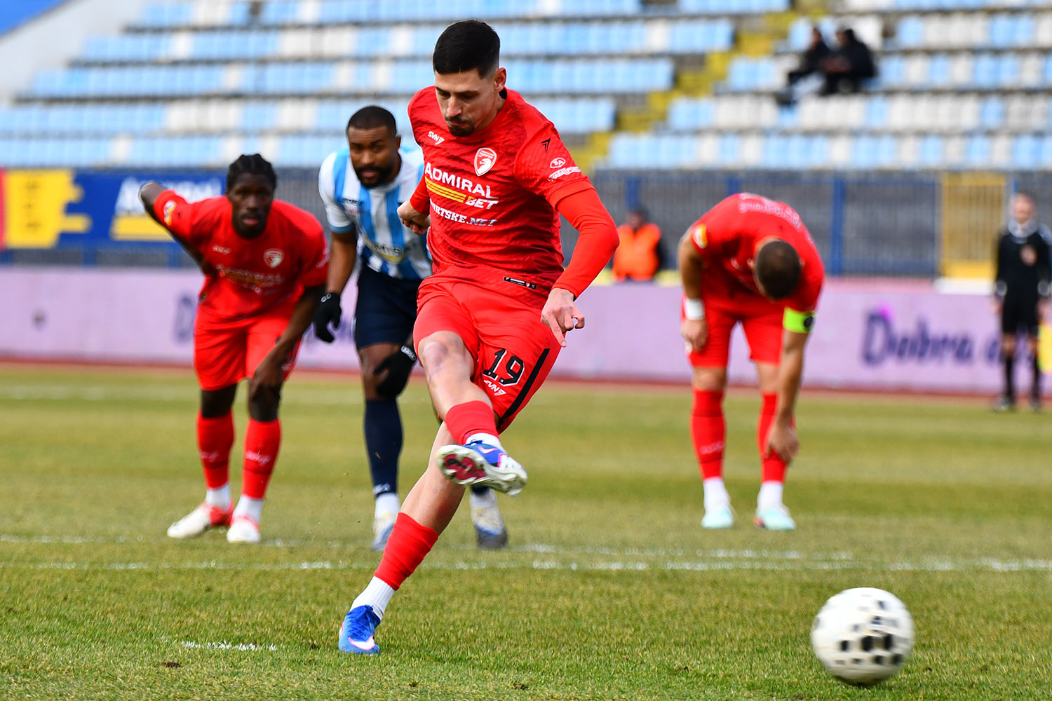 Одговор Радничког стигао је већ у 8. минуту. Голман Вулић је покушао да дриблингом изађе из ситуације, али је Соклер одлично реаговао, одузео лопту и изнудио пенал. Управо је словеначки нападач преузео одговорност и мирно реализовао једанаестерац за 1:1.